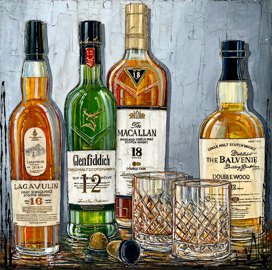 Elle est reconnue pour ses interprétations thématiques de bouteilles de grands vins et autres spiritueux, ainsi que d’autres luxueux objets, offrant ainsi une perspective anecdotique sur des éléments familiers.