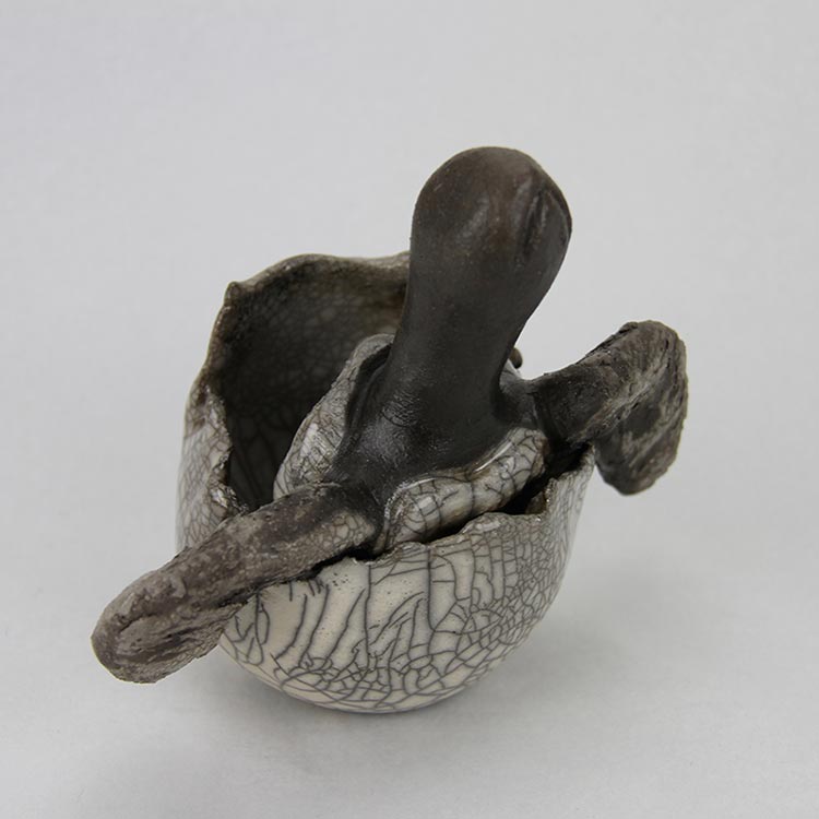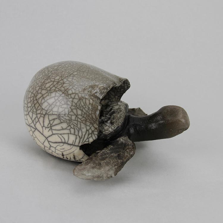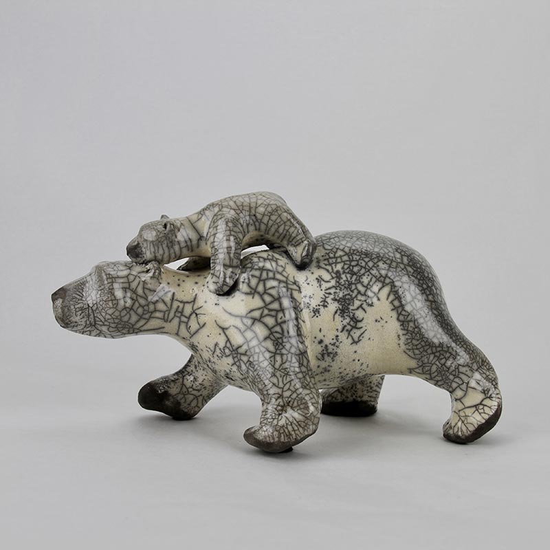 Le Raku, une technique de cuisson particulière, est utilisé par Julie pour créer ses représentations d’oiseaux nordiques tels que l’oie blanche et la bernache. Pour elle, le Raku est bien plus qu’une méthode de cuisson, c’est une manière exceptionnelle d’exprimer son art, tout en rendant hommage à l’art japonais. D’autre part, la patine d’oxydes qu’elle emploie rappelle les techniques ancestrales utilisées dans la peinture rupestre, évoquant ainsi une connexion avec notre passé lointain.