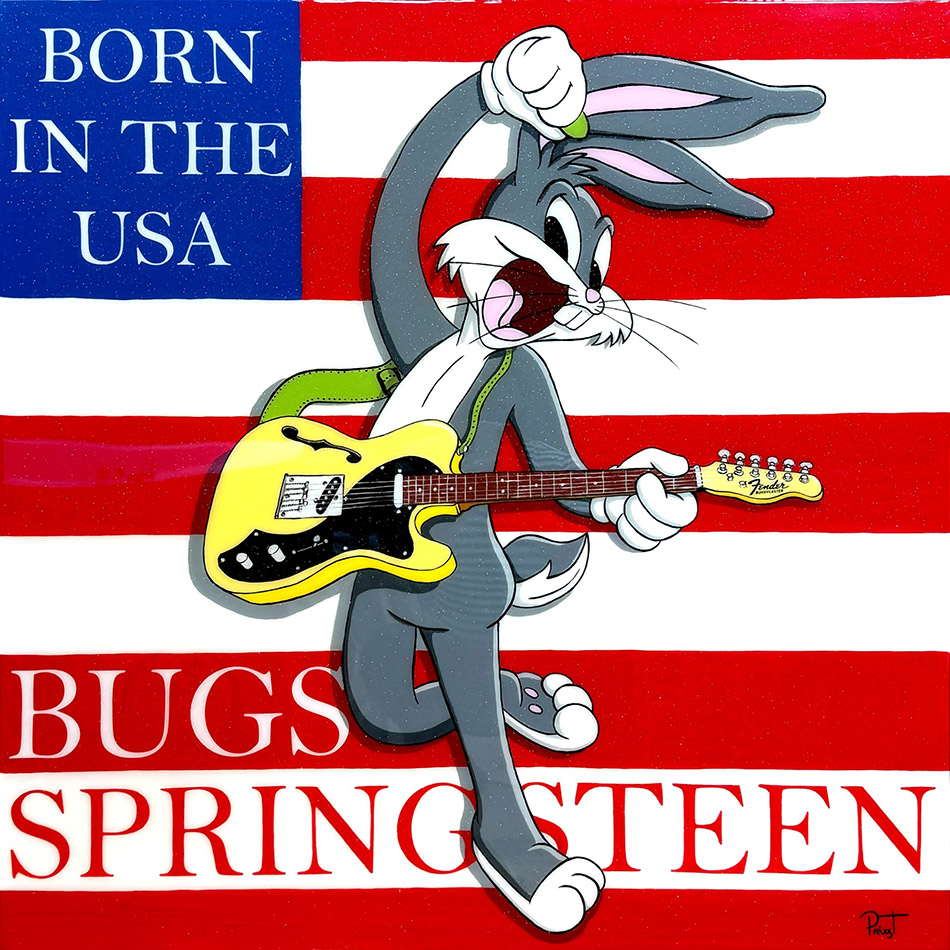 De plus, il incorpore son habilité de sculpter ses personnages en entier ou en parti pour l’incorporer sur la toile. Il a également recours à des éléments tel que du néon de verre et guitares électriques.